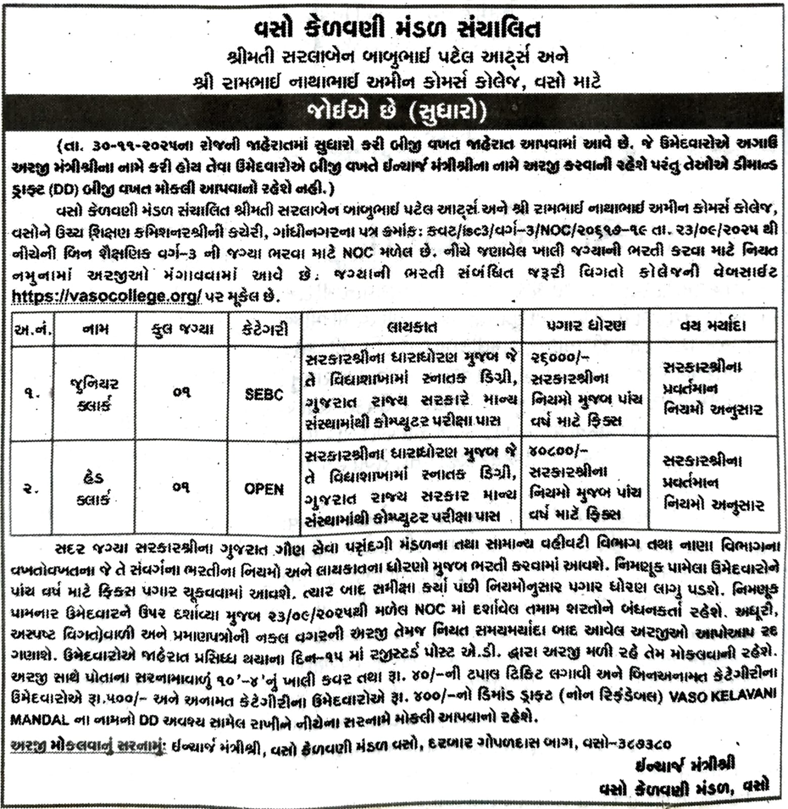 જાહેરાતની પ્રથમ લાઈનમાં લખેલ તારીખ ૩૦/૧૧/૨૦૨૫ ને ૩૦/૧૦/૨૦૨૫ વાચવી.
